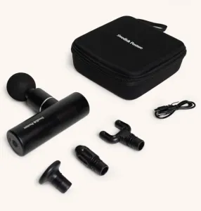 Massasjepistolen Mini hjelper til med å lindre stramme muskler, smerter og stiv rygg gjennom en behagelig massasje. Perfekt for hjemmebruk så vel som for profesjonelle brukere. Det håndholdte designet og 4 erstatningshoder gjør det mulig å nå hver muskel. Du kan enkelt justere hastigheten og vibrasjonsnivået.